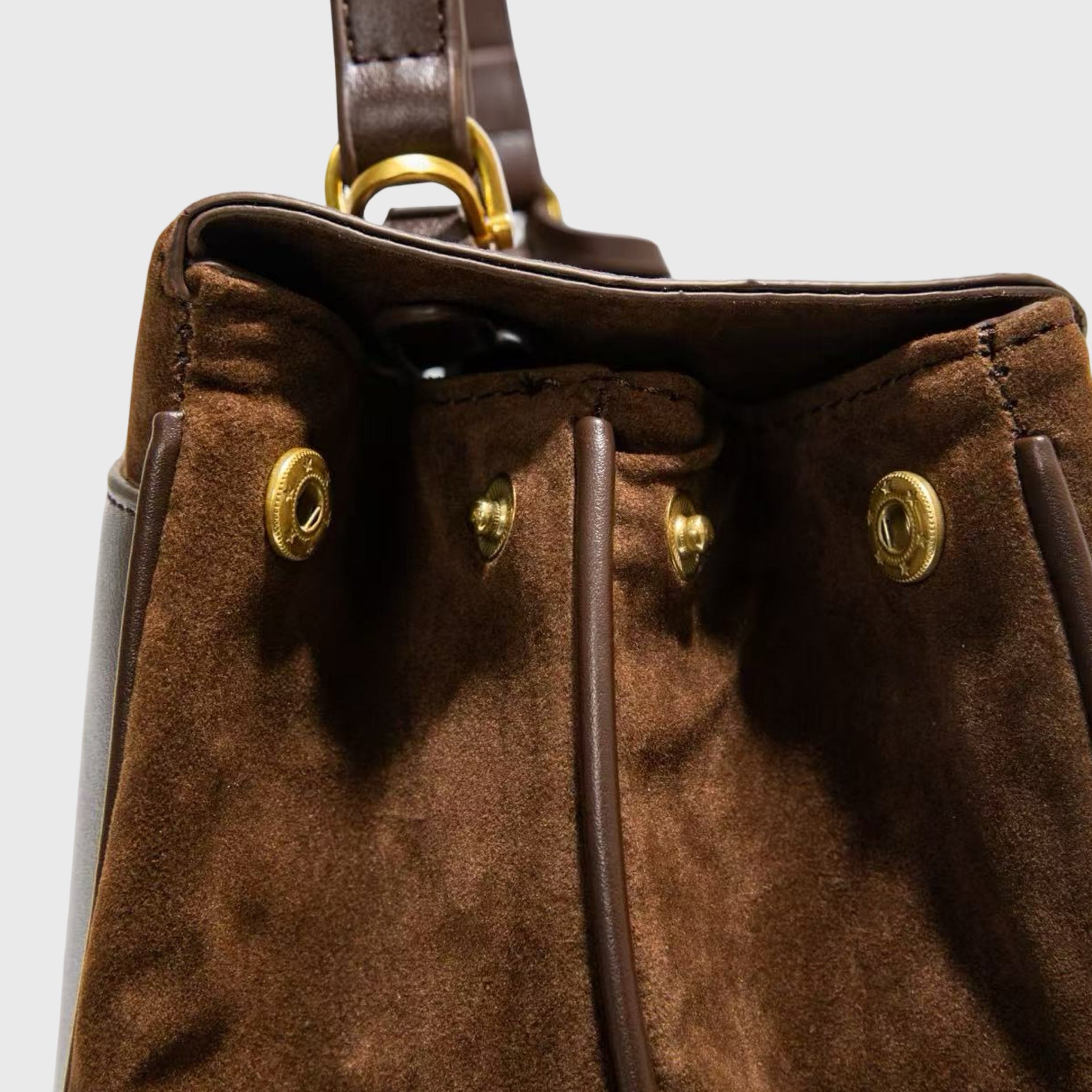 Meet the Ciara Suede - A vision of timeless elegance in luxurious vegan leather. This enchanting silhouette features gleaming gold accents and transitions effortlessly from shoulder to crossbody wear. With its refined snap closure and hidden interior pocket, the Ciara combines conscious luxury with everyday versatility.