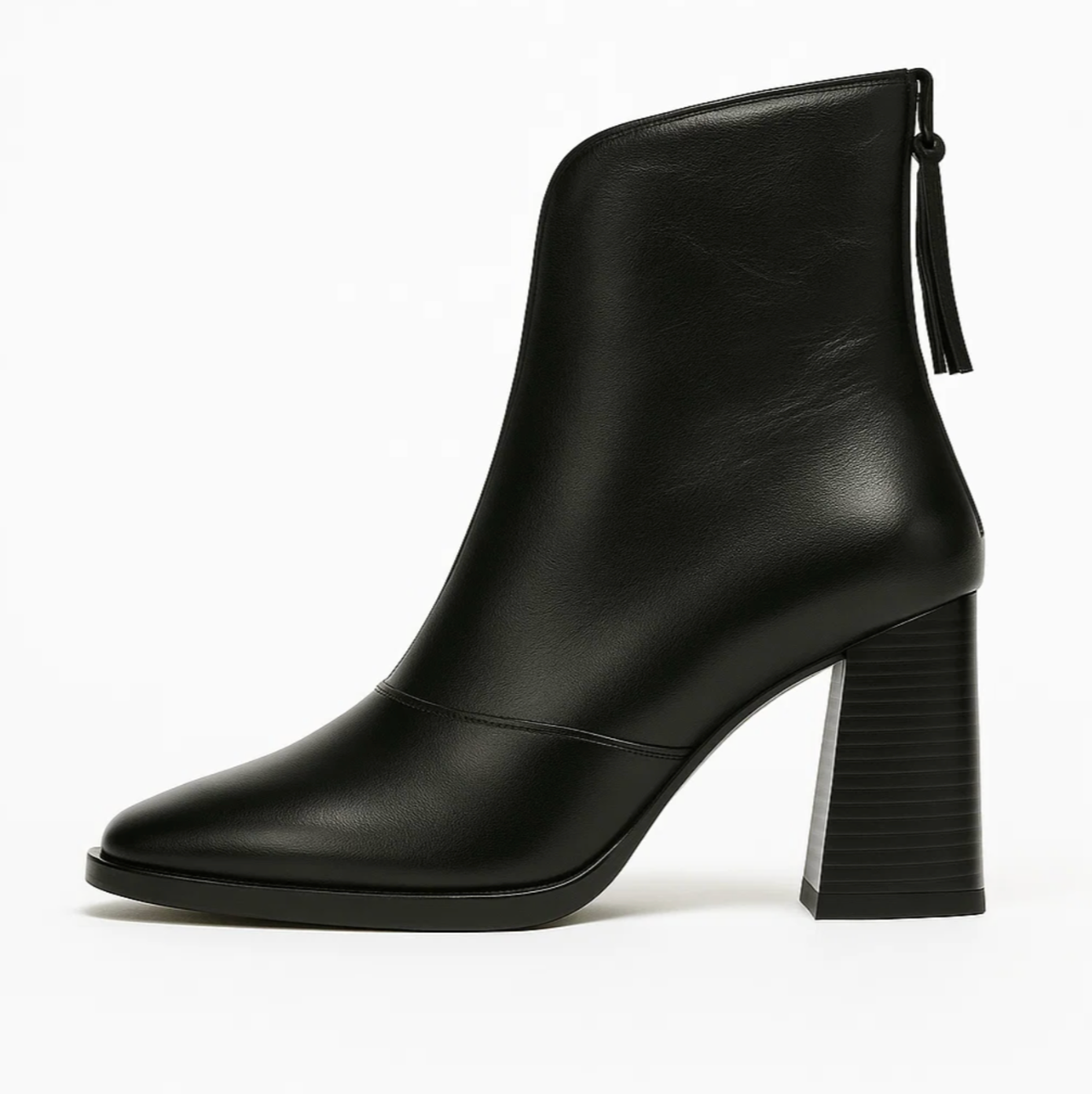 These modern ankle boots combine refined lines with a powerful, minimalist look. The smooth leather-like finish gives the boots a luxurious shine, while the high block heel ensures an elegant yet stable stance. The slim, tapered design instantly elevates any outfit — from casual jeans to a chic evening look. Perfect for those who seek daily comfort without compromising on class.