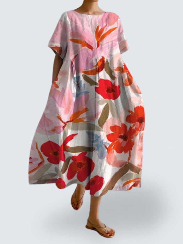 Lucy's Flow Dress – Effortless Elegance with Bold Floral Art