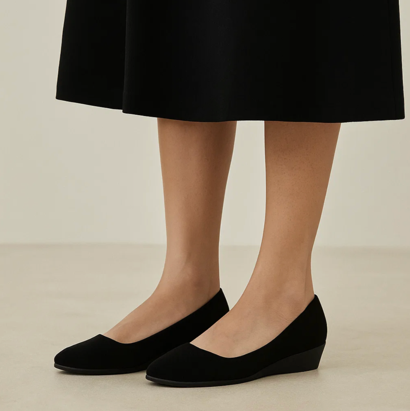 Introducing the Elia Ballerina, stylish and orthopaedic slip-ons that effortlessly combine elegance and comfort. Thanks to their simple, timeless design, they pair well with any outfit — from casual jeans to a chic dress. The lightweight wedge heel and soft insole provide optimal support, ensuring your feet remain relaxed even after a long day.