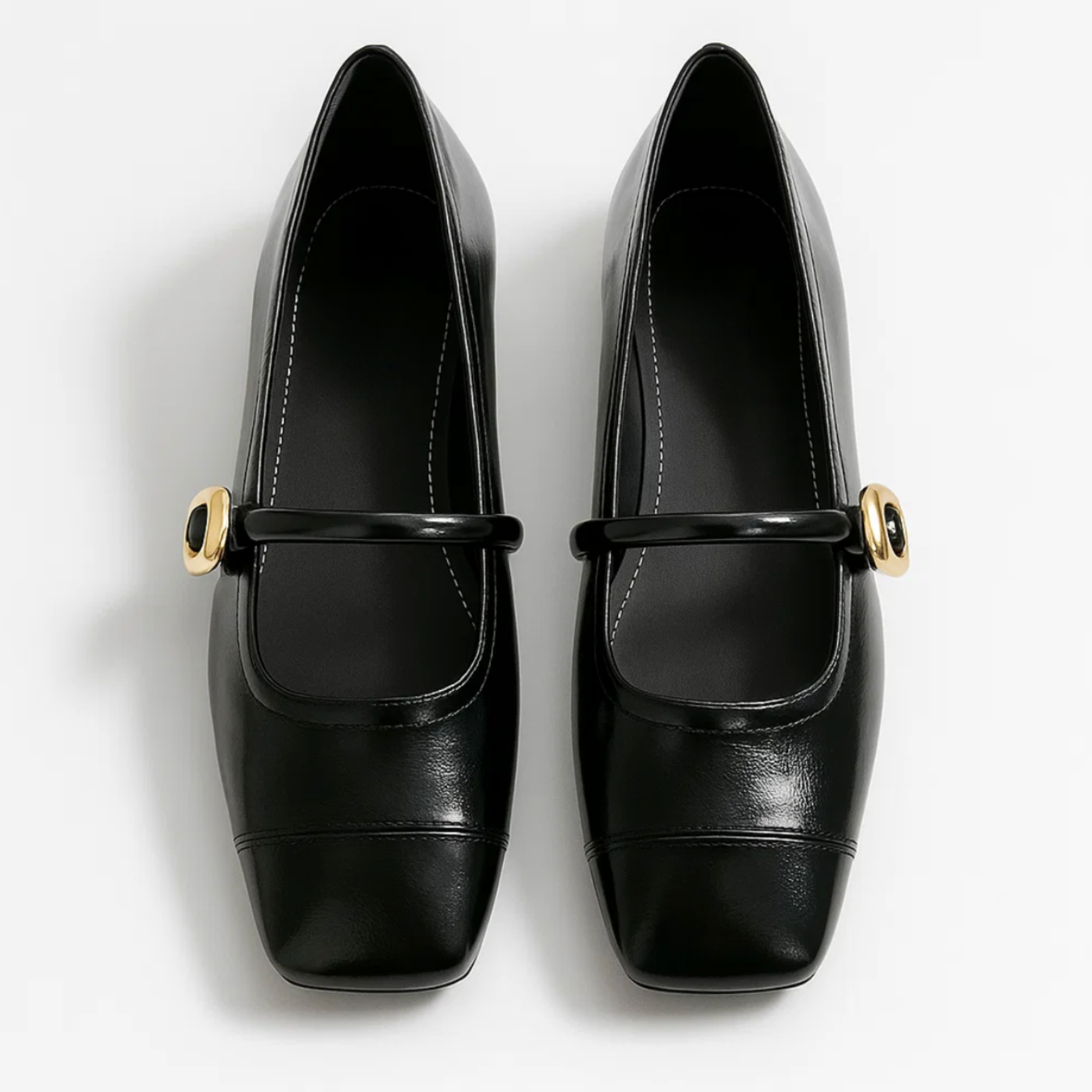The Flat Elegant Ballerinas are an ode to classic femininity and understated luxury. With their square toe, elegant ankle strap with gold buckle, and deep brown sheen, they elevate any outfit to a higher level. These shoes are perfect for both the office and dinner, combining a vintage look with a modern twist.