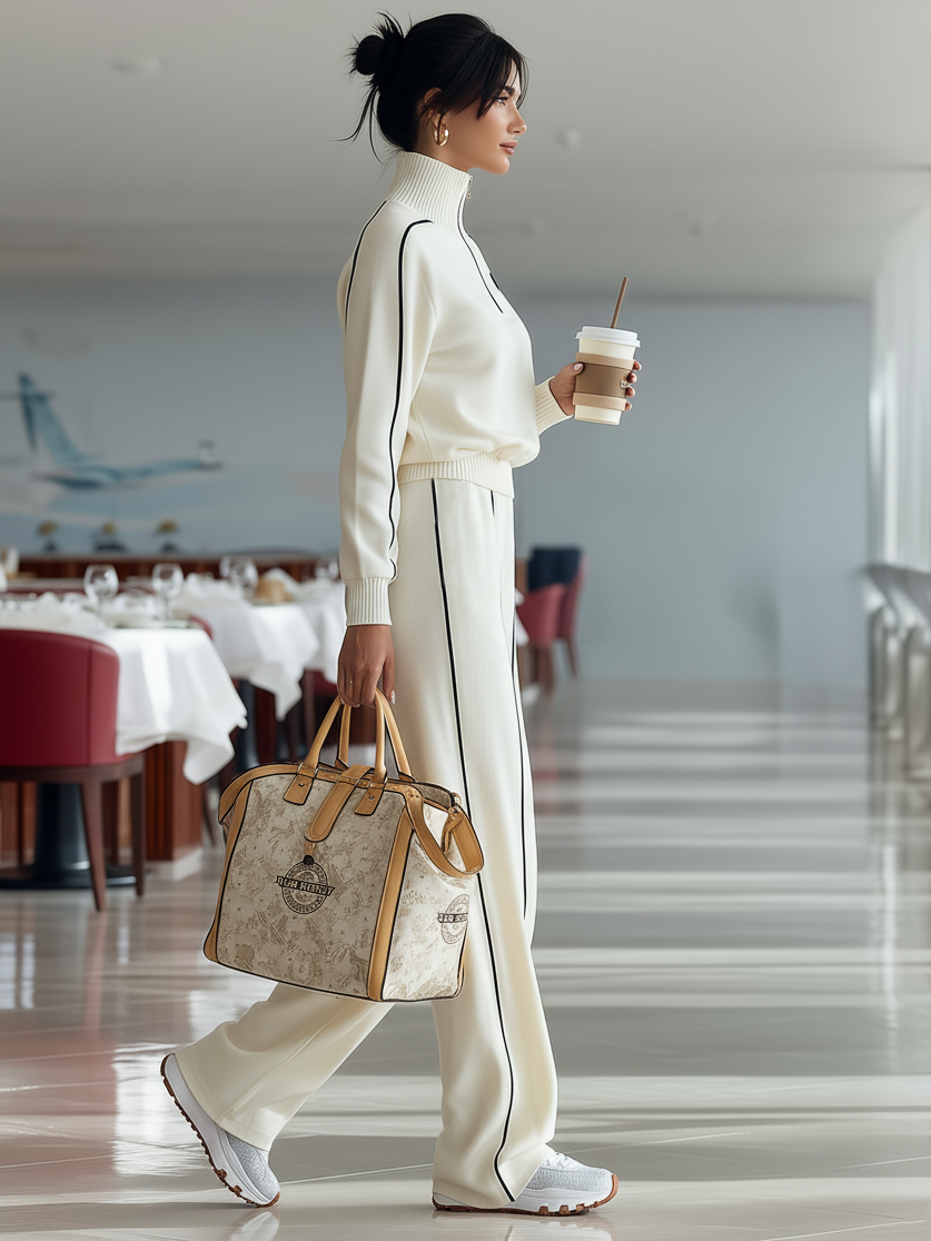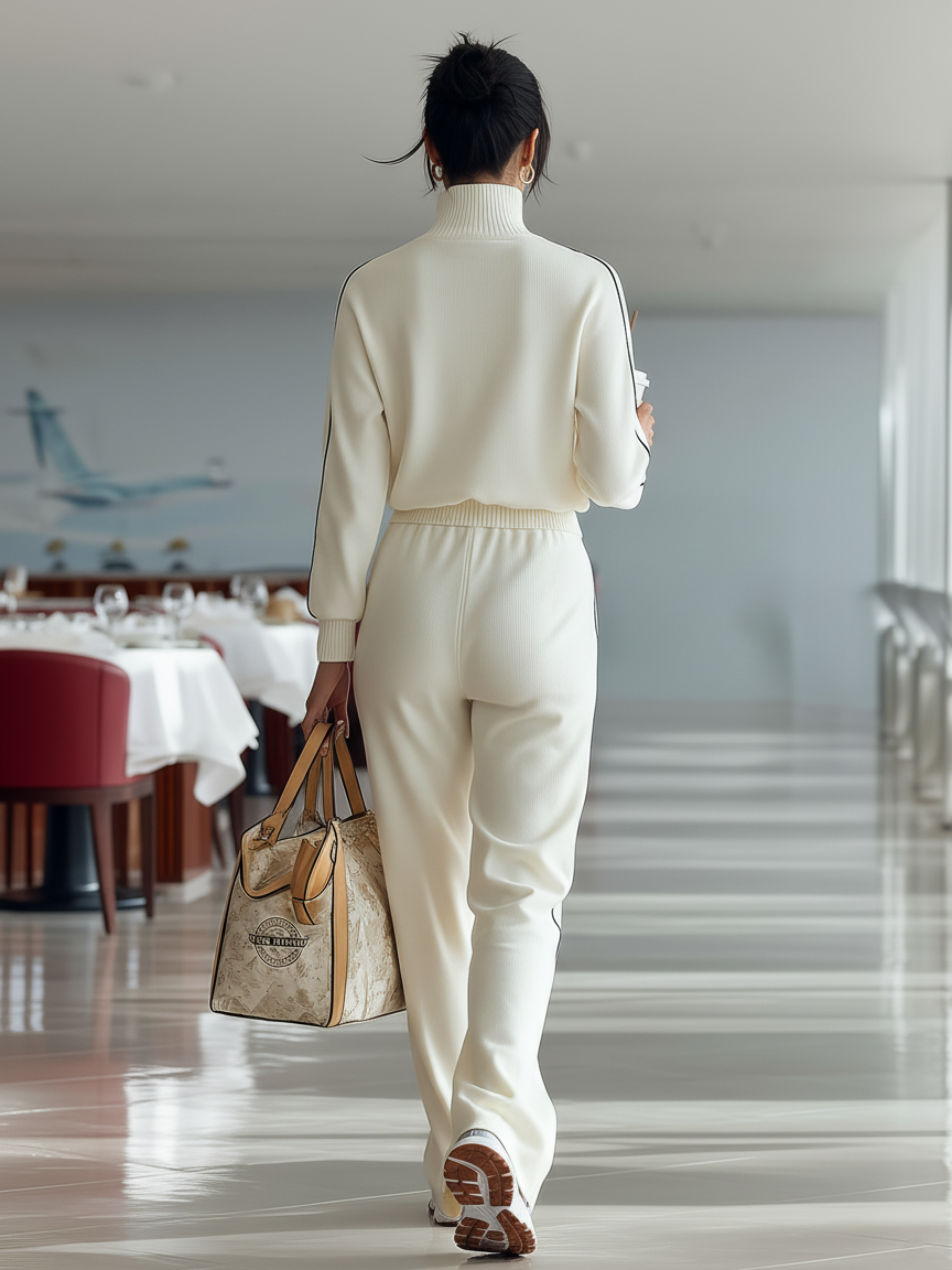 Casual Ribbed Trim Zipper Turtleneck Sports Set