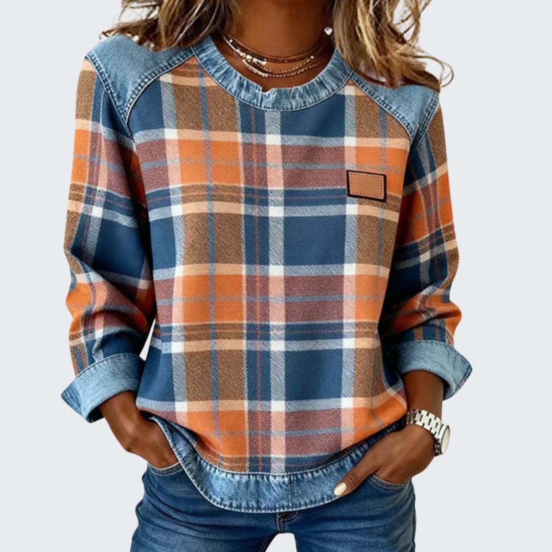 The Avery sweater combines classic plaid with modern denim-inspired detailing, creating a relaxed yet elevated look for everyday wear. Its soft feel and structured accents offer the perfect balance of comfort and style, while the contrast denim trim adds a unique, contemporary touch. Whether you're heading out for a casual day or enjoying a cozy moment at home, Avery brings fresh, easygoing charm to any outfit.