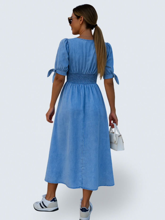 Enter a world of sophistication with the Brooklyn dress. This must-have enhances every figure with a timeless silhouette and delicate details, making you feel like the best version of yourself. Perfect for special events or casual days, it combines comfort and elegance for a lasting impression.